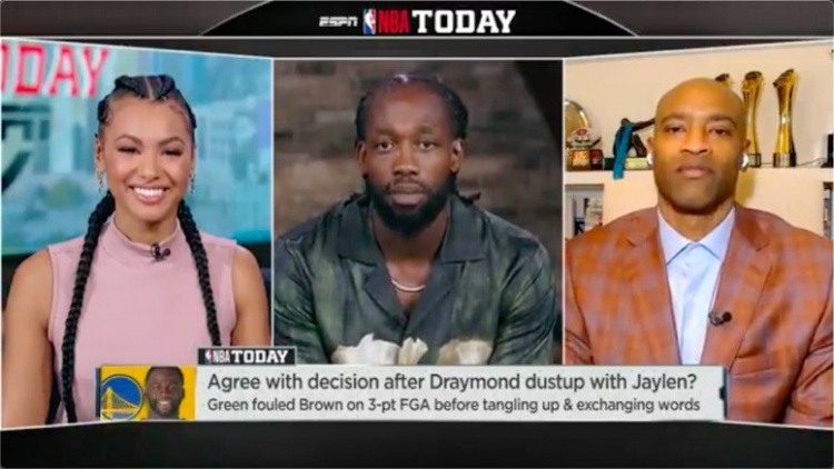 6月7日讯 今日森林狼后卫贝弗利参加了NBA Today节目,并与主持人Malika Andrews、嘉宾卡特一起聊到了昨日总决赛G2追梦和杰伦-布朗的冲突。