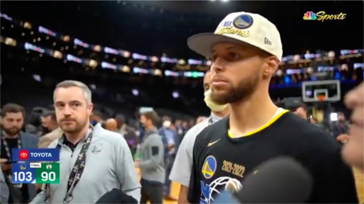 6月17日讯 NBA总决赛G6,勇士客场战胜绿军夺冠!赛后库里在球馆里接受了采访。