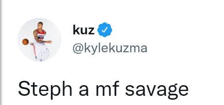 比赛进行期间,奇才球员库兹马发推称赞了库里的表现,他写道:“库里太TM的不讲理了!”