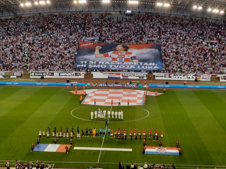 此役是莫德里奇为克罗地亚国家队出战的第150场比赛,克罗地亚球迷在看台展示巨型TIFO致敬这位传奇球星,上面写着:“你是我们的船长(队长),我们是你的港湾。”