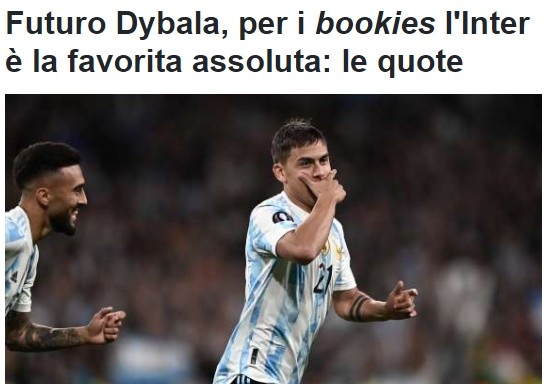 6月7日讯 迪巴拉和尤文的合同将在本月底到期,关于他的未来众所纷纭。国米新闻网报道迪巴拉下家的赔率,国米1.35遥遥领先,罗马第二,皇马、巴萨、曼联等队也登赔率榜。