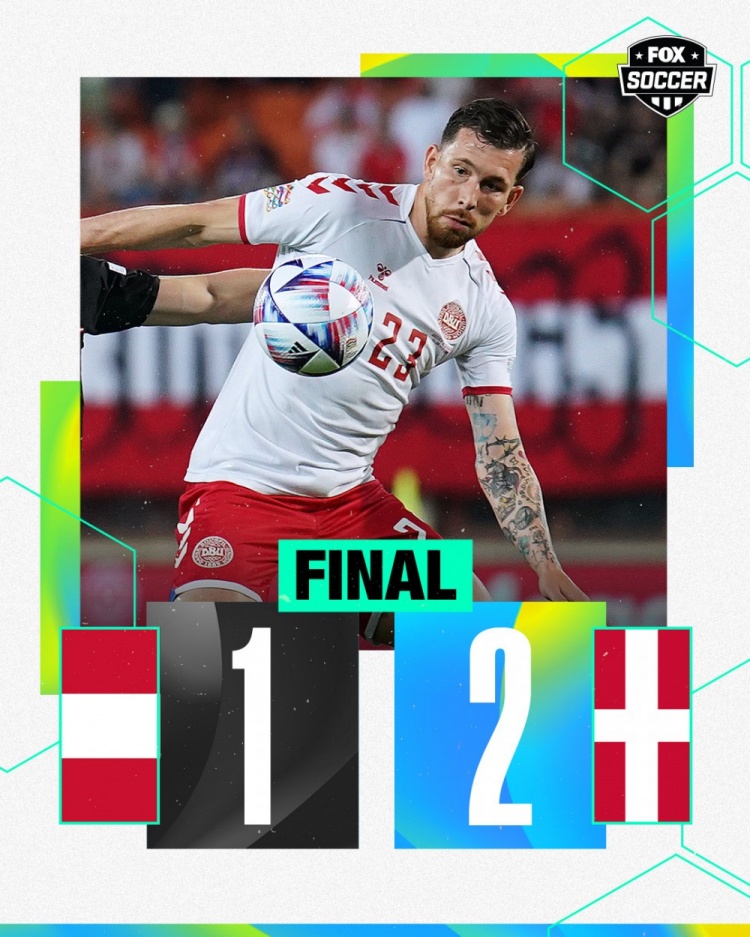 欧国联A1组第2轮,奥地利主场迎战丹麦,霍伊别尔破门,阿瑙托维奇助攻+错失空门,拉尔森打入制胜球,最终丹麦2-1客胜奥地利。