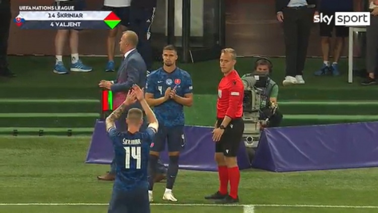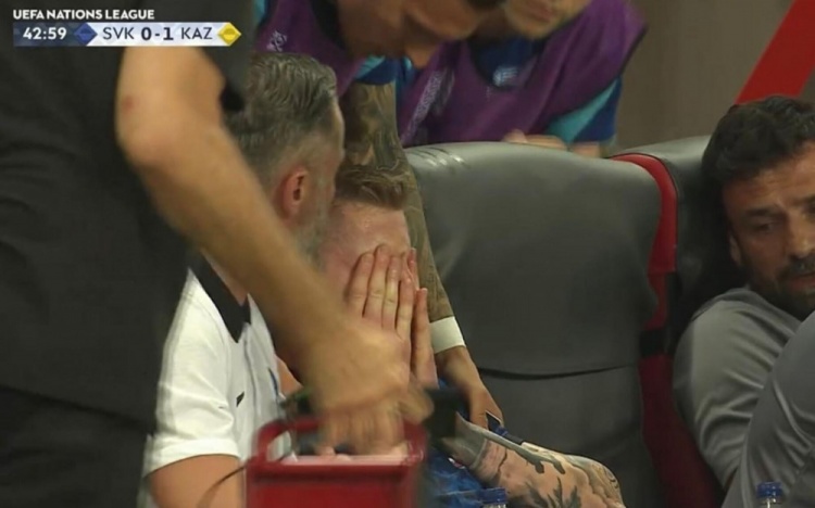 在斯洛伐克的欧国联比赛中,什克里尼亚尔在第43分钟为了防守对方球员而相撞,在接受简单治疗后仍然无法回到比赛,因此被换下。什克也在回到替补席后以手捂面,难掩失望。