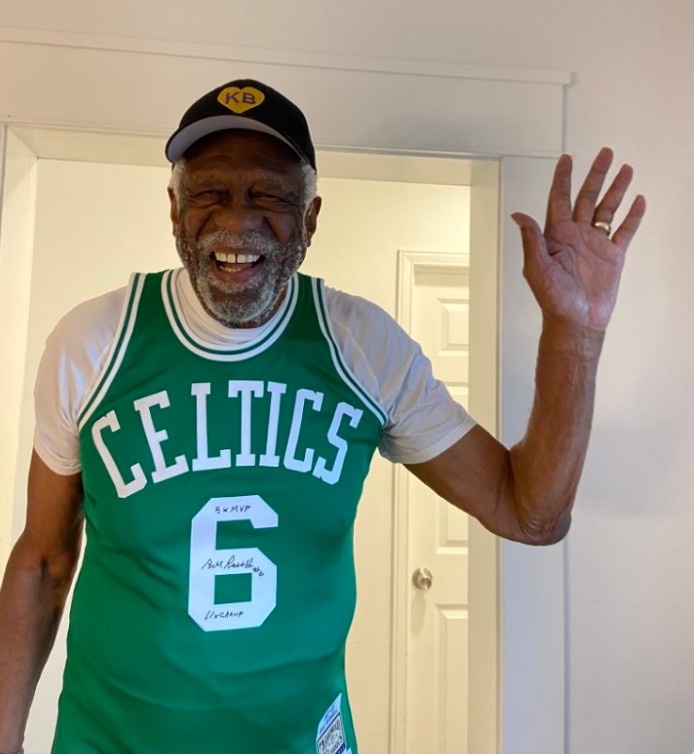 绿军名宿比尔-拉塞尔老爷子更推晒照,照片中老爷子穿上了自己的绿军6号战袍,球衣上写着“5次(常规赛)MVP。”