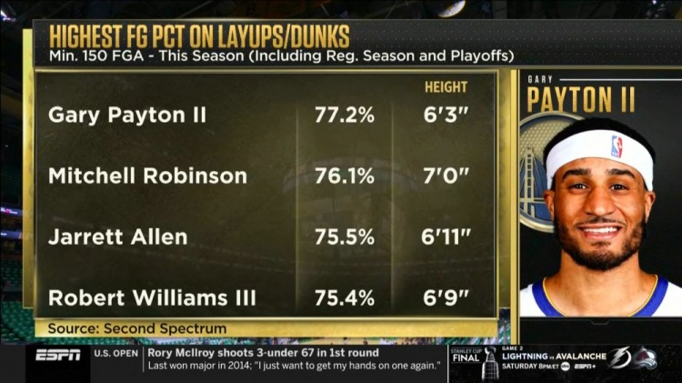 据美媒Second Spectrum统计,本赛季小佩顿的上篮和扣篮命中率是全联盟最高的(常规赛+季后赛&至少出手150次),具体如上图: