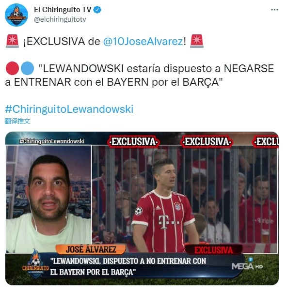 六台记者Jose Alvarez今日报道,莱万愿意为了去巴萨,拒绝参加拜仁的训练。